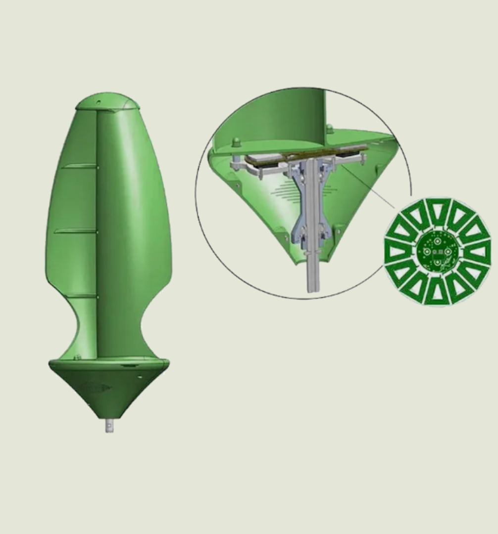 In der Galerie können Sie mit dem Aeroleaf eine Mikro-Windanlage mit doppelflügeliger Struktur entdecken. Von der sanften Brise bis hin zu starken Böen – mit dem Aeroleaf können Sie die Kraft des Windes in elektrische Energie umwandeln und das ohne wartungsanfällige Riemen oder Zahnräder.