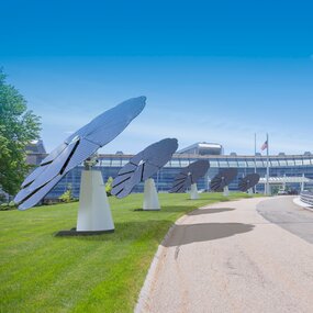 Im Außenbereich des Coreum hingegen wartet die intelligenteste Solaranlage der Welt darauf, von Ihnen besucht zu werden. Gleich einer Sonnenblume entfaltet die Smartflower ihre volle Pracht bei Sonnenschein und richtet ihre effizienten Solarmodule präzise nach dem Lauf der Sonne aus. Das Ergebnis: Die Smartflower ist nicht nur ein absoluter Blickfang, sondern verspricht einen um bis zu 40% höheren Ertrag als herkömmliche PV-Anlagen.