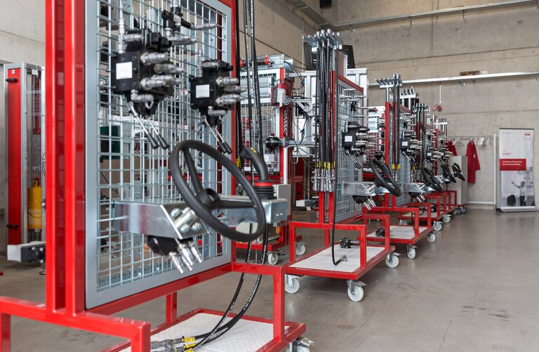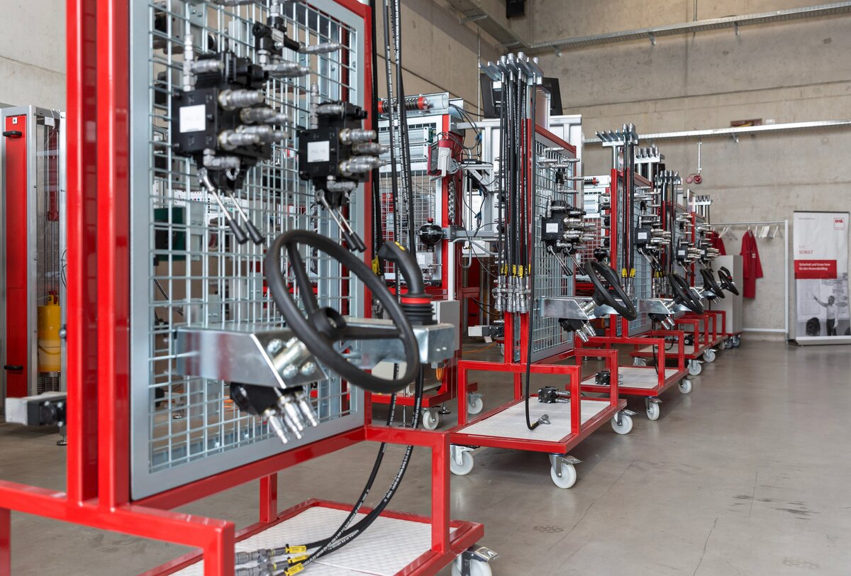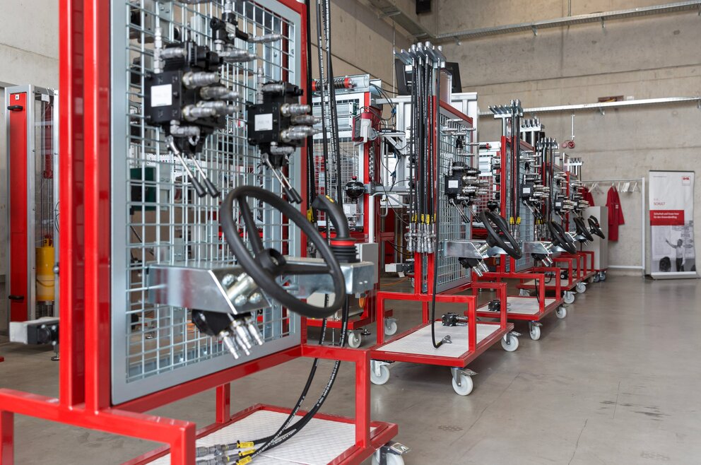 - praktische Anwendung bisher gelernter theoretischer Kenntnisse in Form von selbständigem Erstellen hydraulischer Schaltungen und Anwendung am Praxislehrstand
